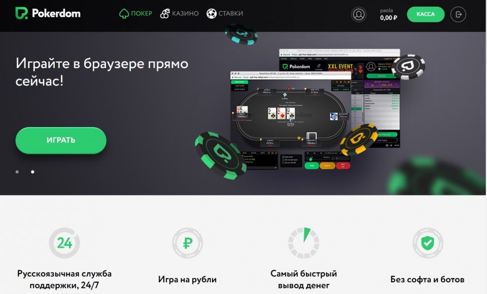 На официальном сайте ПокерДом можно играть на деньги онлайн. Для этого предусмотрен веб-клиент. Он обладает практически аналогичным функционалом, что и стационарный клиентский софт.
