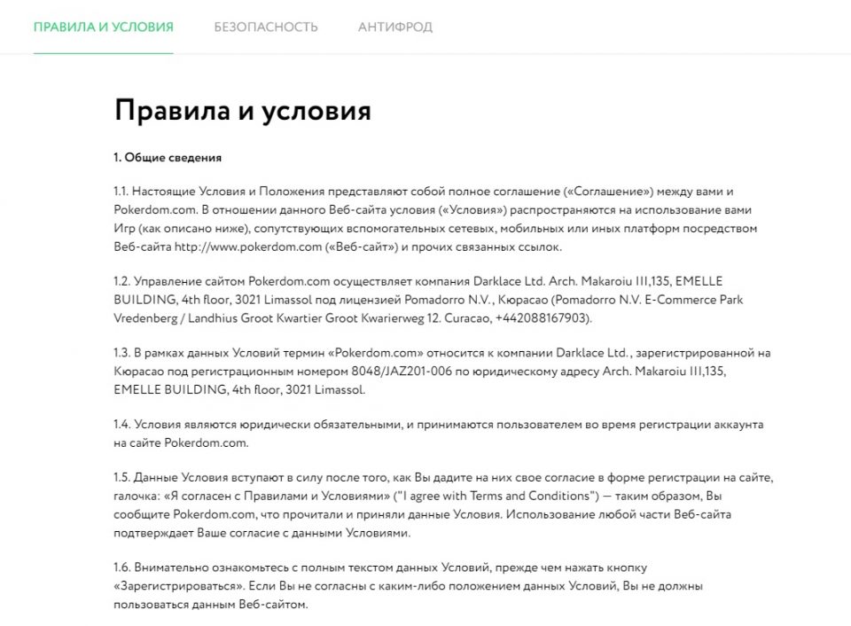 В разделе «Антифрод» доступны сведения о том, какие методы использует онлайн-комната для борьбы с мошенничеством. Здесь также приведена информация о способах защиты платежей клиентов покер-рума.